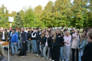Der 11. Jahrgang wohnt dem ersten symbolischen Spatenstich bei.
